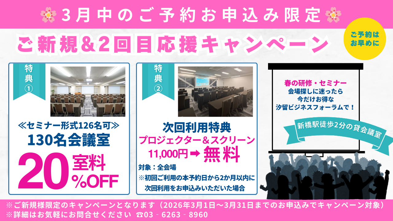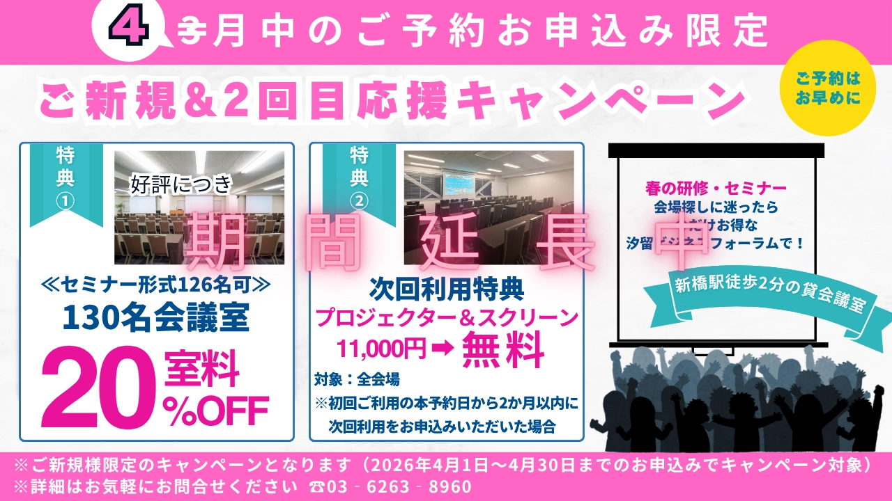 最近は女性の参加者が多いので、おしゃれで綺麗な貸し会議室を探していました。 場所も汐留・新橋・銀座エリアなので、セミナー終わりにお茶や買い物をされて帰る方が多いみたいです。