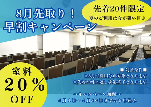 最大130名までの収容力を備え、大規模研修・会議・イベントにお使いいただけます。